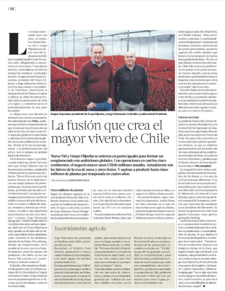 This was highlighted by Pulso / La Tercera in its September 22 edition, following a conversation with Gaspar Goycoolea and Jorge Valenzuela, two of the key architects behind the alliance. The publication positions the group as Chile’s leading nursery and a regional and global agricultural development platform.